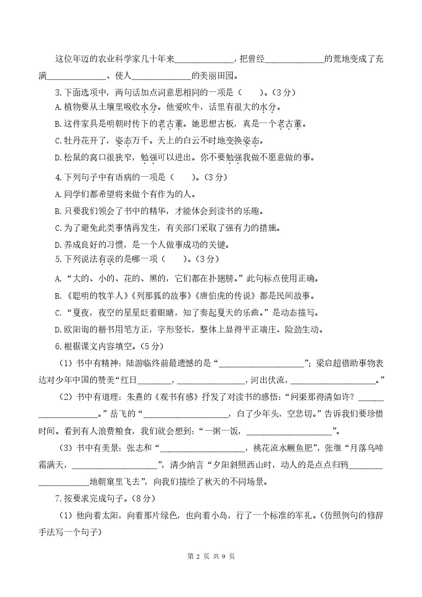 首页 > 全部 > 期末试卷 > 五上语文期末素养测评基础卷一(试卷+答题卡+答案解析33页)