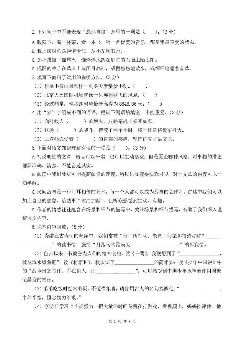 首页 > 全部 > 期末试卷 > 五上语文期末素养测评提高卷一(试卷+答题卡+答案解析32页)