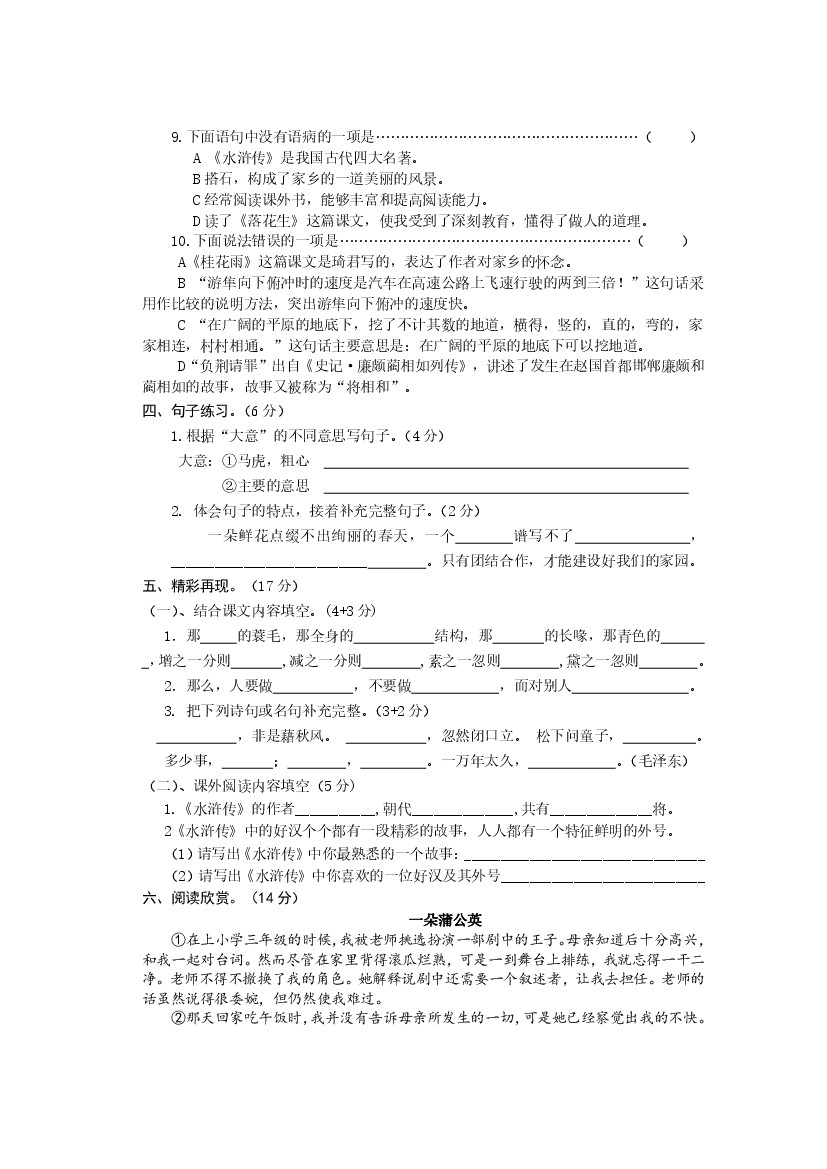 五(上)语文期中真题检测卷
