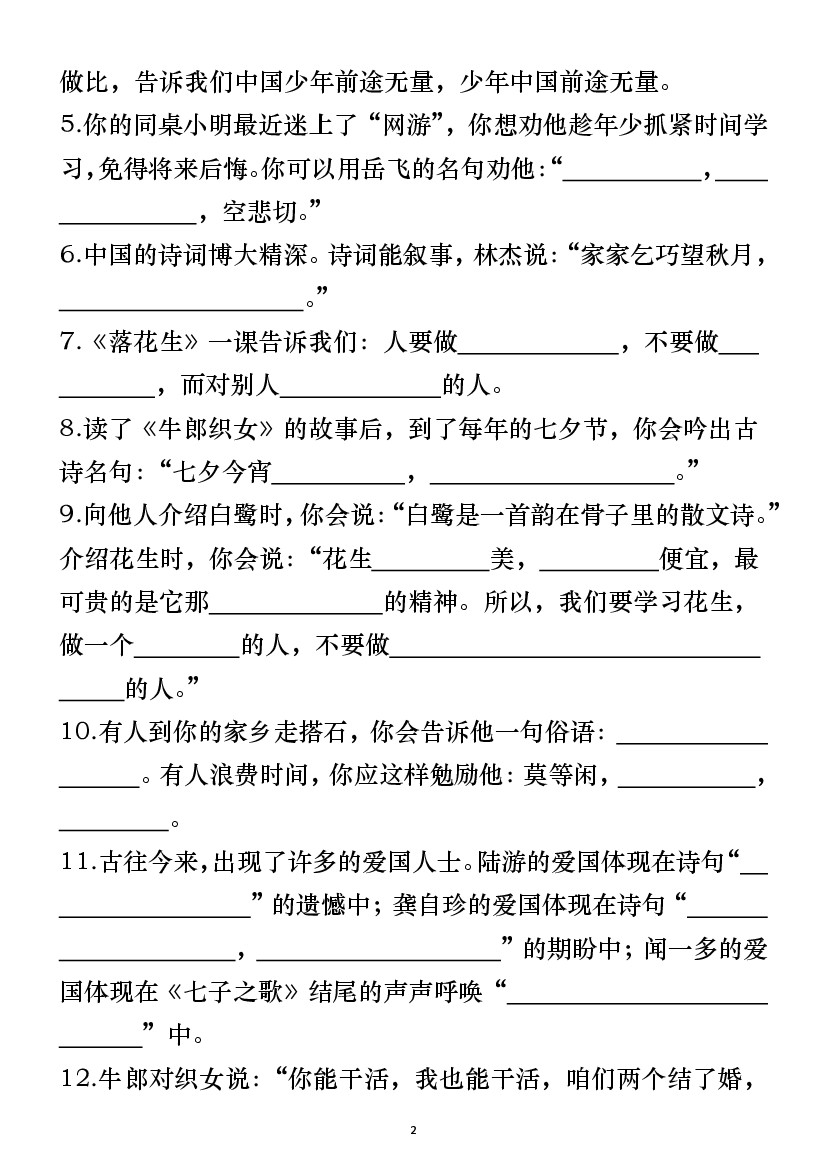 五年级上册语文期中冲刺专项复习(答案+空白)
