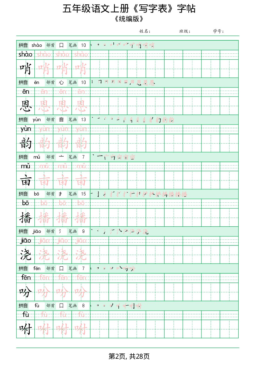 首页 > 全部 > 生字字帖 > 五年级(上)语文《写字表》字帖