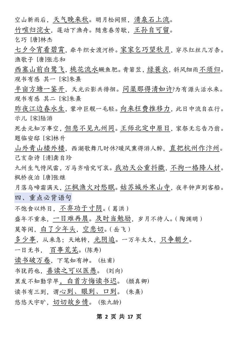小学 四升五语文【暑假预习知识点】