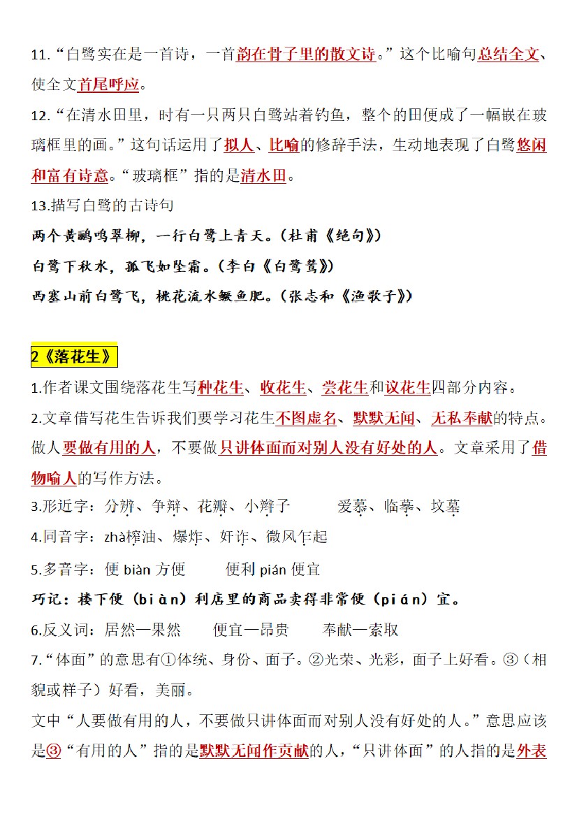 小学 五上语文【暑假预习必备1-27课详细考点】
