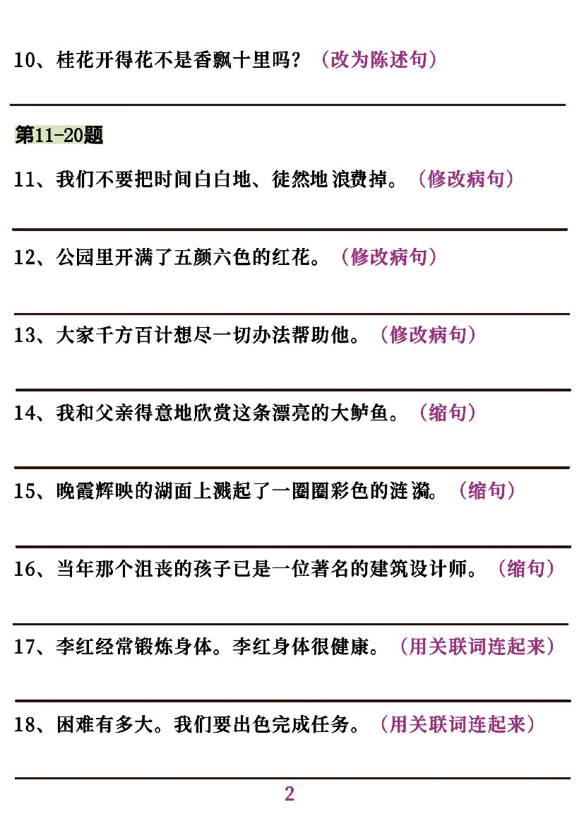 首页 > 全部 > 语句专项 > 五年级(上)语文 句子专项必考经典训练100题
