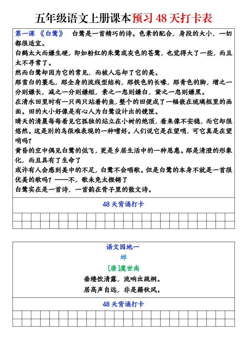 首页 > 全部 > 预习清单 > 【暑假预习闯关表】五上语文