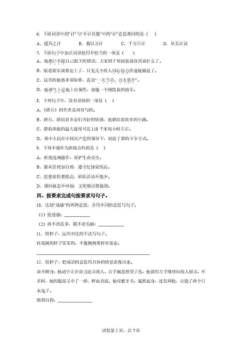 首页 > 全部 > 月考试卷 > 2025-2026学年统编版五年级上册第一次月考语文试卷(C卷)