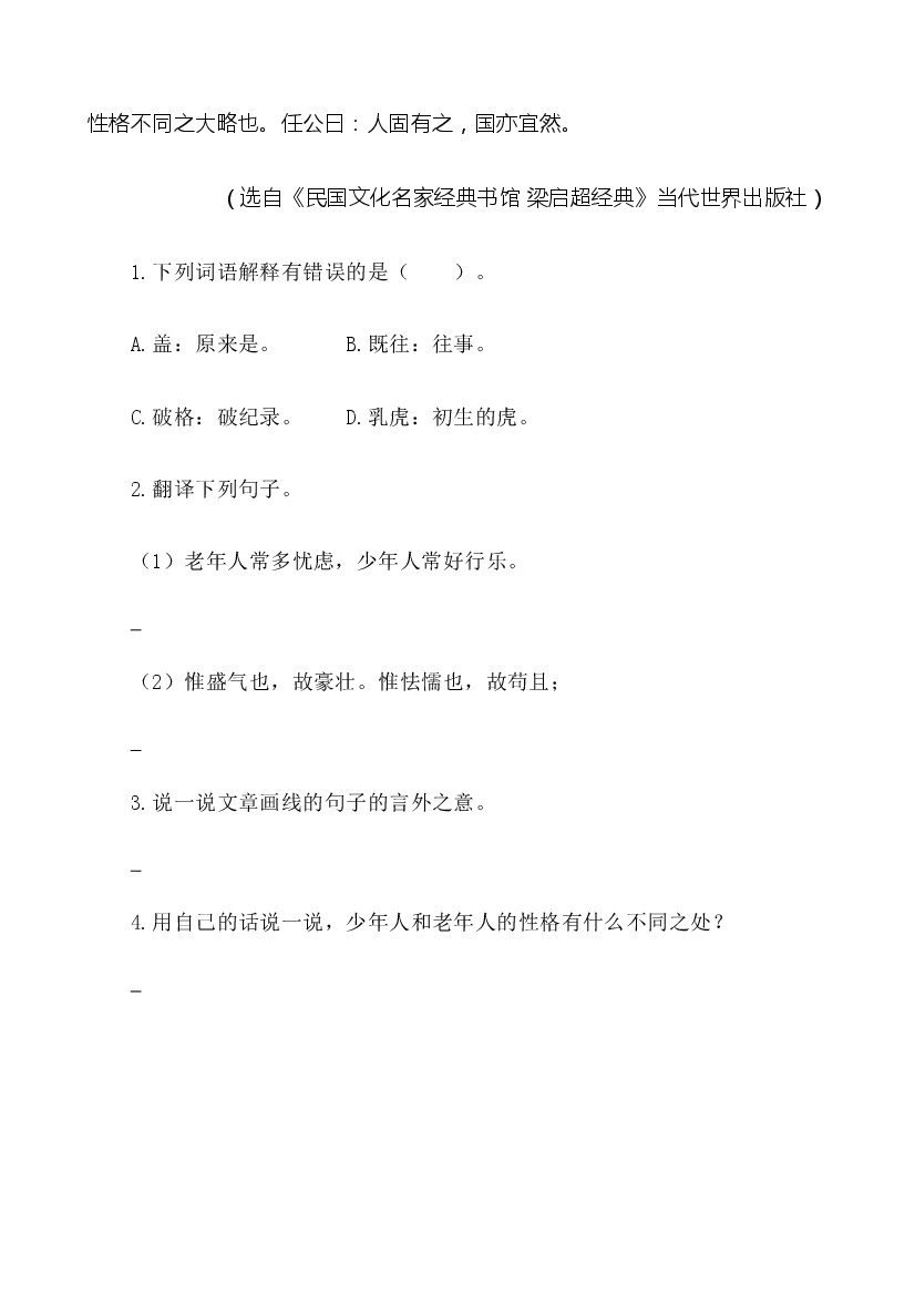 首页 > 全部 > 阅读理解 > 25年秋【五上语文】类文阅读1-13 少年中国说(节选)