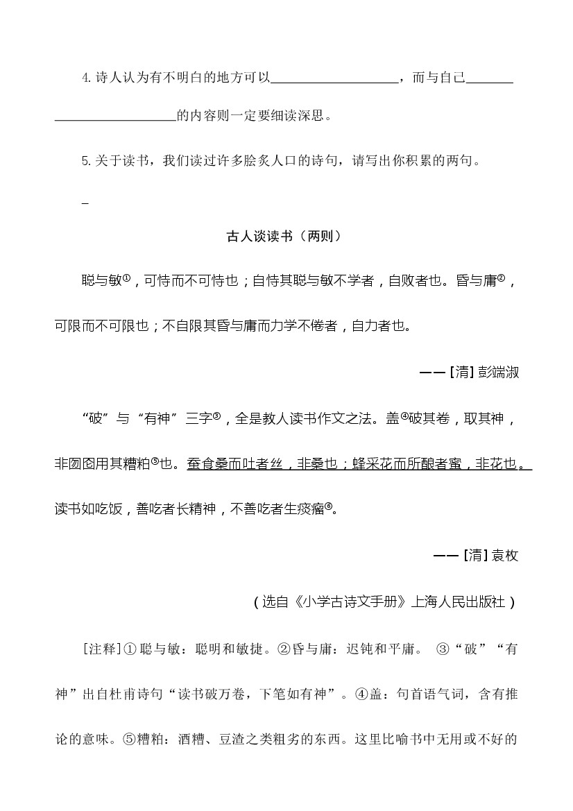 小学 25年秋【五上语文】类文阅读1-25 古人谈读书
