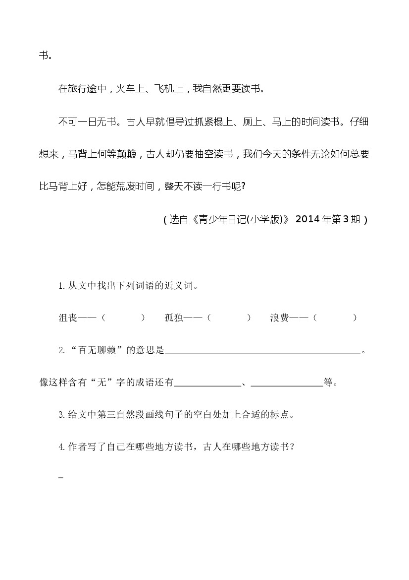 小学 25年秋【五上语文】类文阅读1-26 忆读书