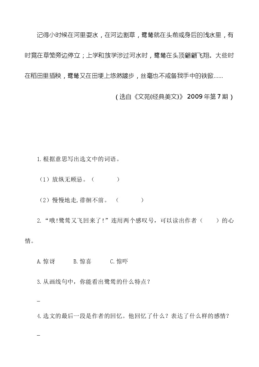 首页 > 全部 > 阅读理解 > 25年秋【五上语文】类文阅读1-23 鸟的天堂
