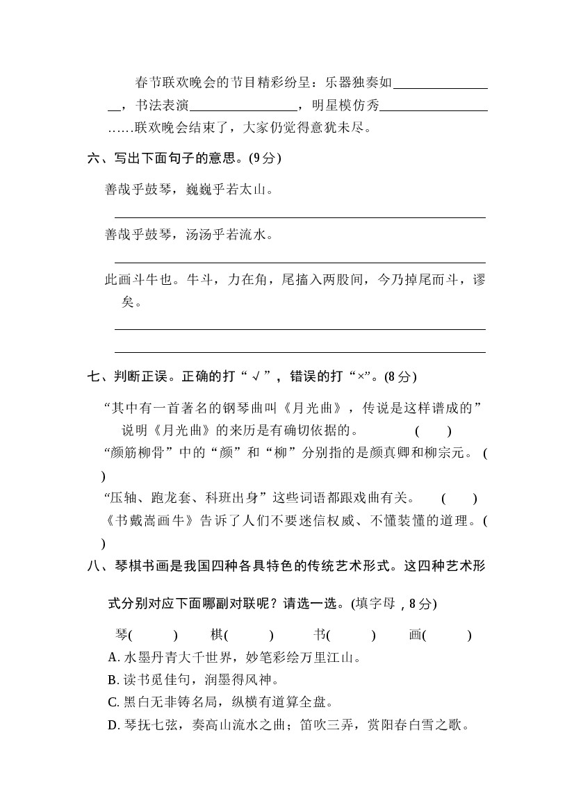 小学 25年秋六上语文 “艺术之美”主题突破卷