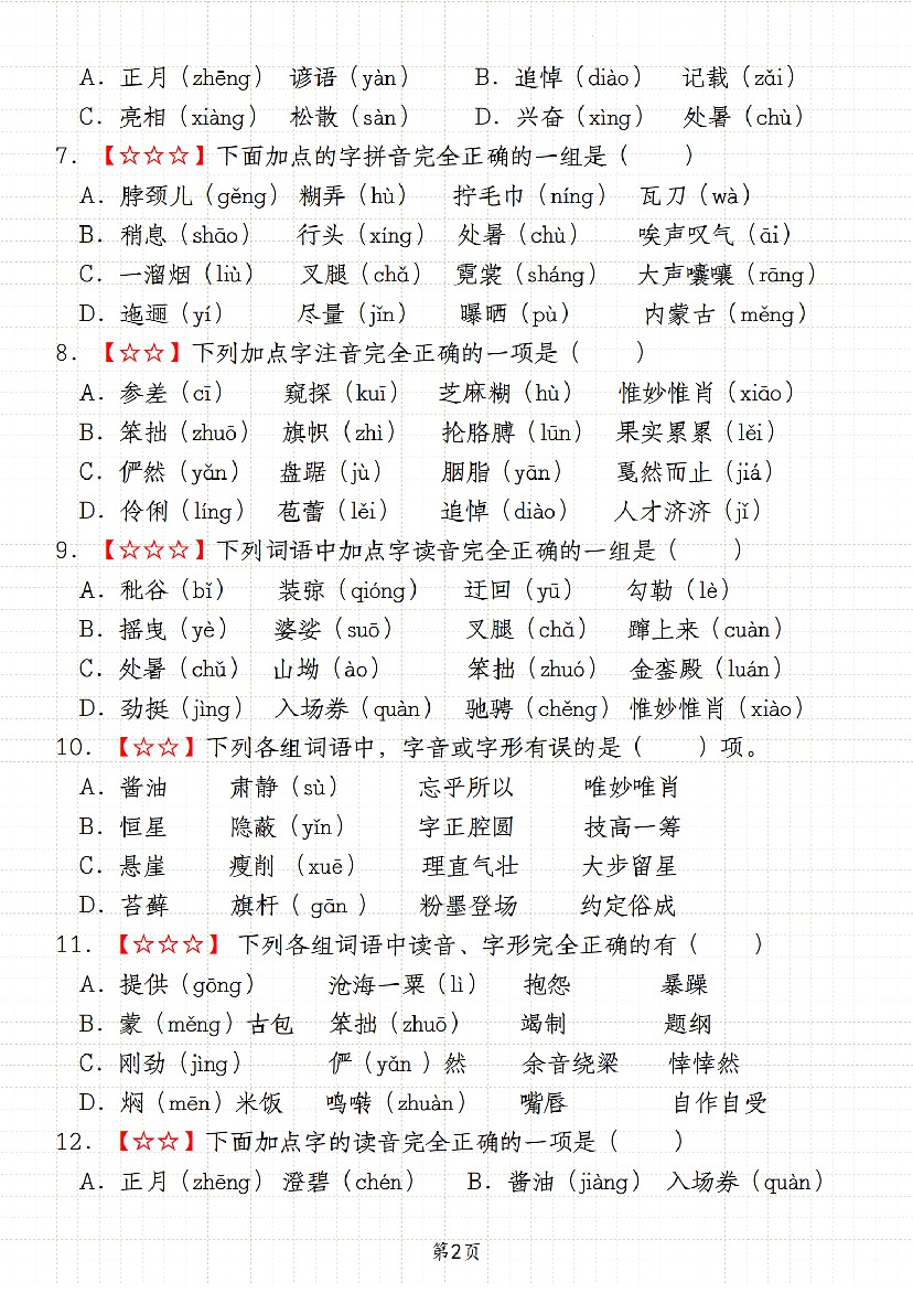 小学 《语文期末真题分类复习专题(1)字音》6年级上册语文