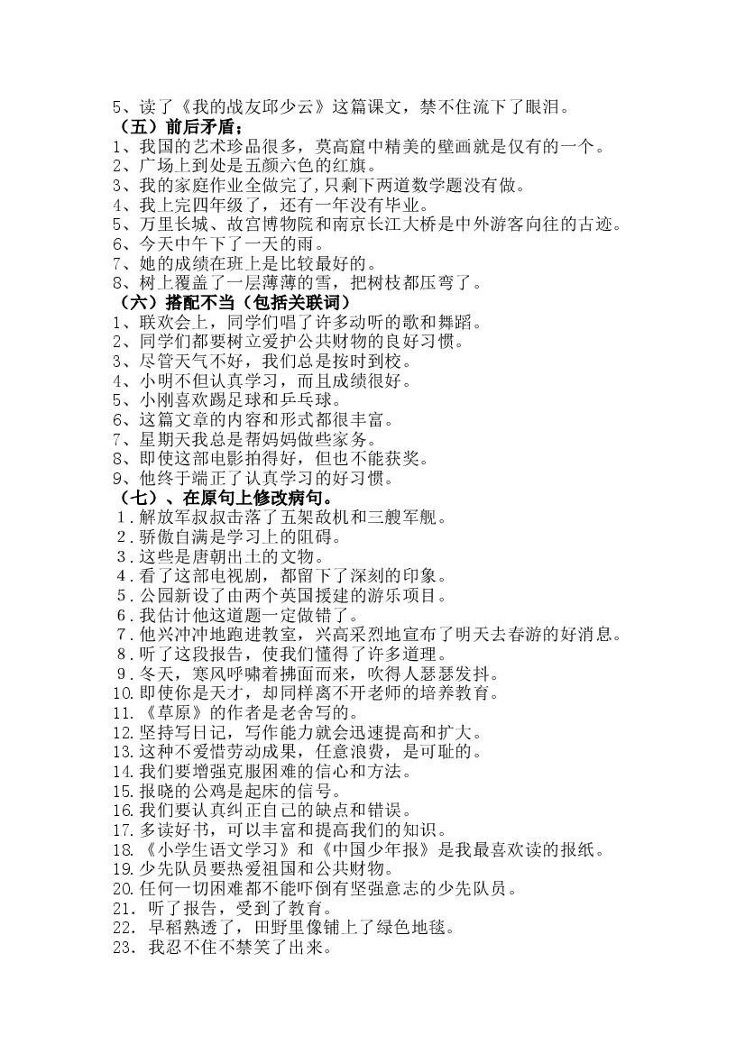 25年秋六上语文病句修改(三)