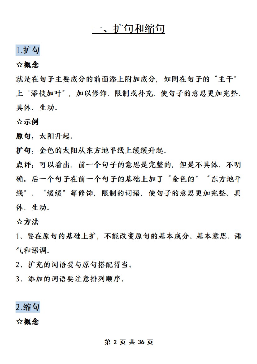 首页 > 全部 > 专项练习 > 25年秋六上语文小学语文改写句子方法总结与练习