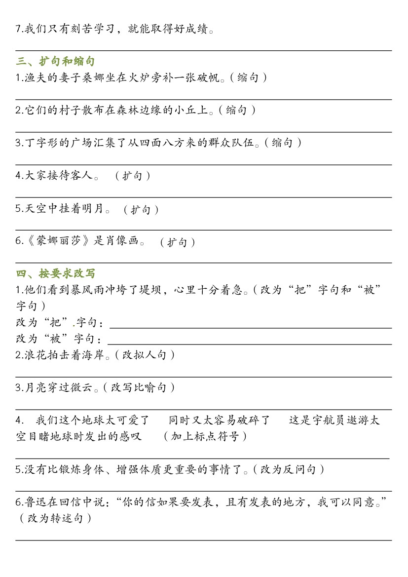 首页 > 全部 > 专项练习 > 六年级(上)语文句子专项练习