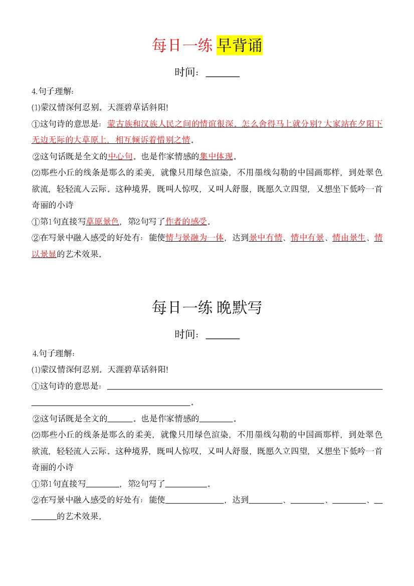 六年级(上)语文早读晚默