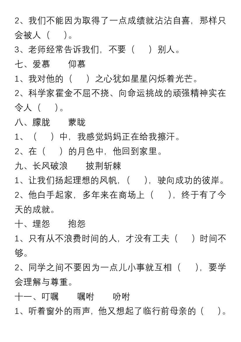 首页 > 全部 > 专项练习 > 六上语文选词填空练习
