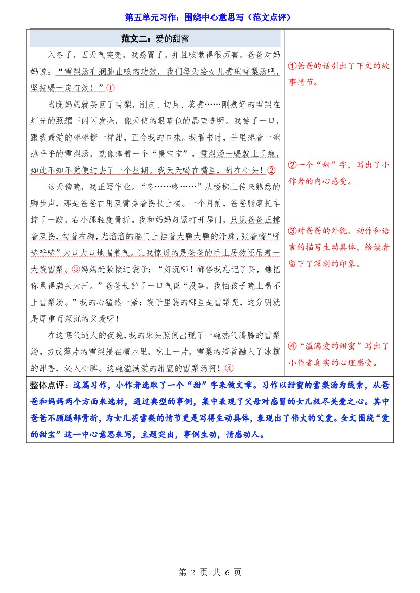 25年秋【六上语文】第5单元习作《围绕中心意思写》(范文点评)