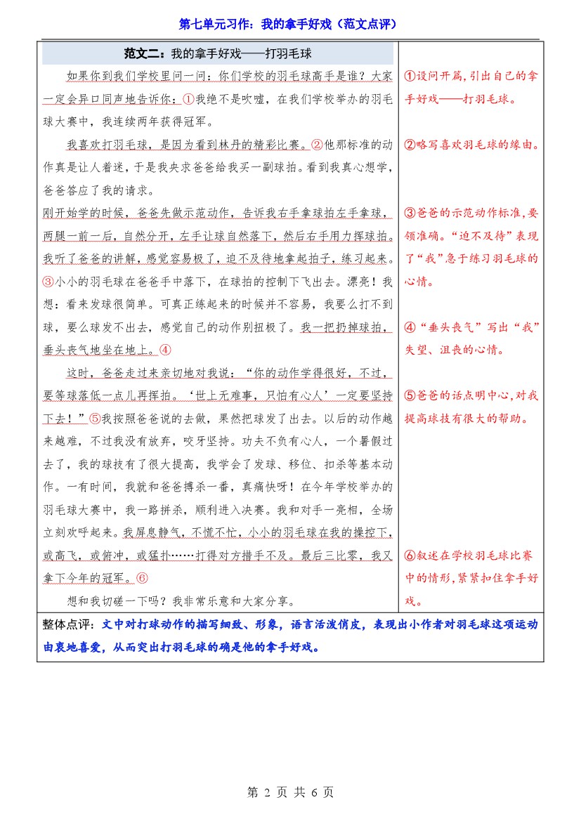 25年秋【六上语文】第7单元习作《我的拿手好戏》(范文点评)