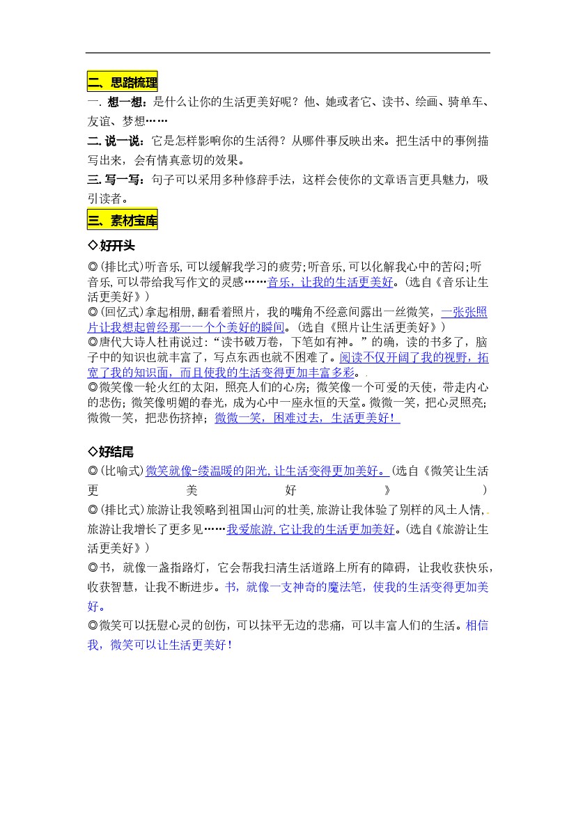 人教部编版六年级语文上册第3单元习作《让生活更美好》名师指导和佳作点评(10篇)