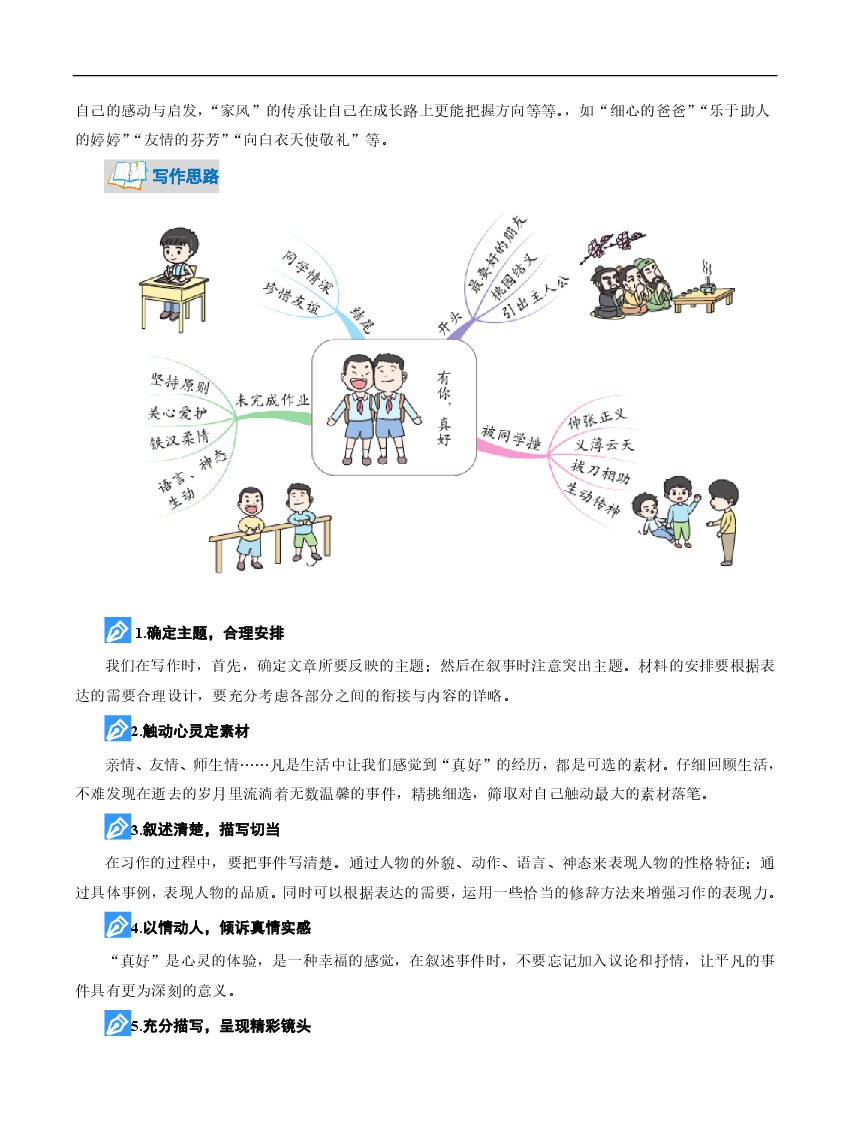 小学 人教部编版六年级语文上册第8单元同步作文:有你,真好-写作指导+范文赏析+病文升格-部编版语文六年级上册