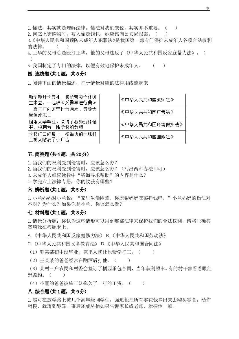 首页 > 全部 > 单元测试 > 六上丨道法 第4单元测试(5)(部编版)