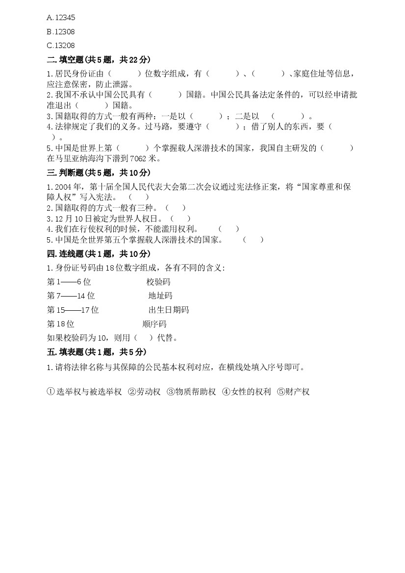 首页 > 全部 > 单元测试 > 六上丨道法 第2单元测试(5)(部编版)