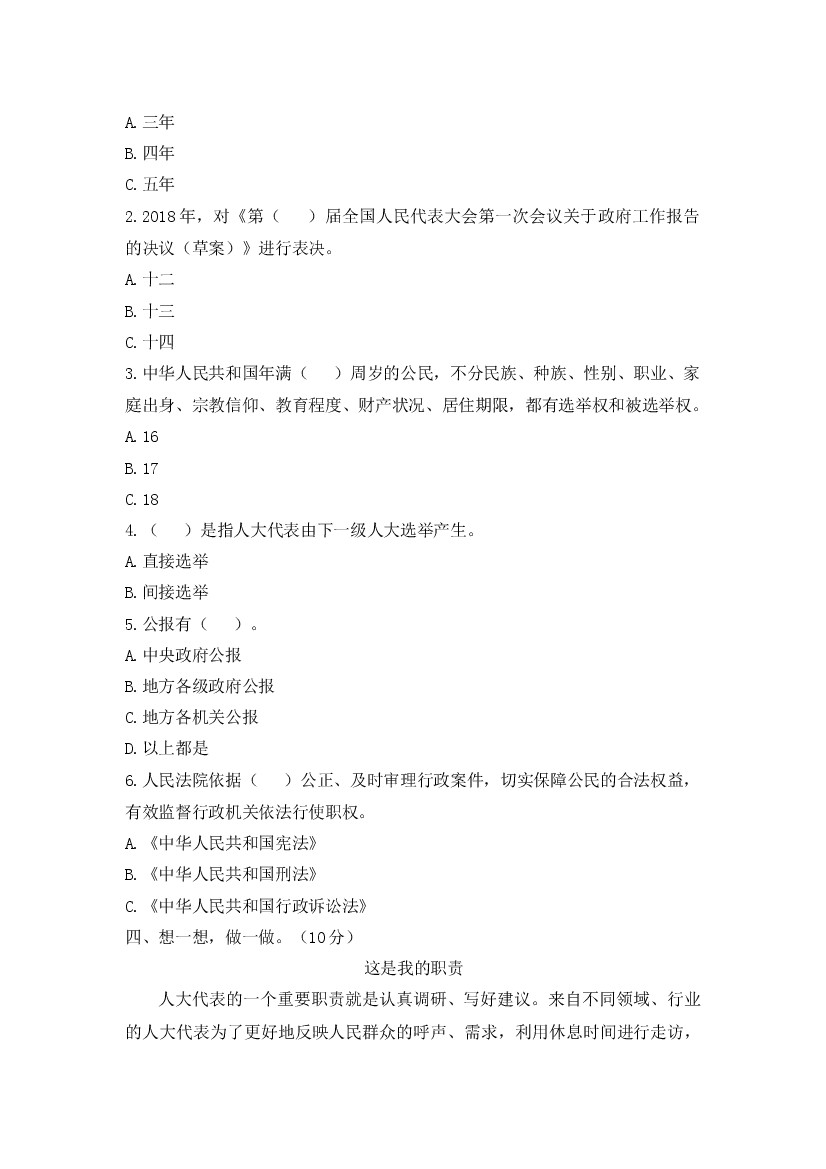 首页 > 全部 > 单元测试 > 六上丨道法 第3单元测试(1)(部编版)
