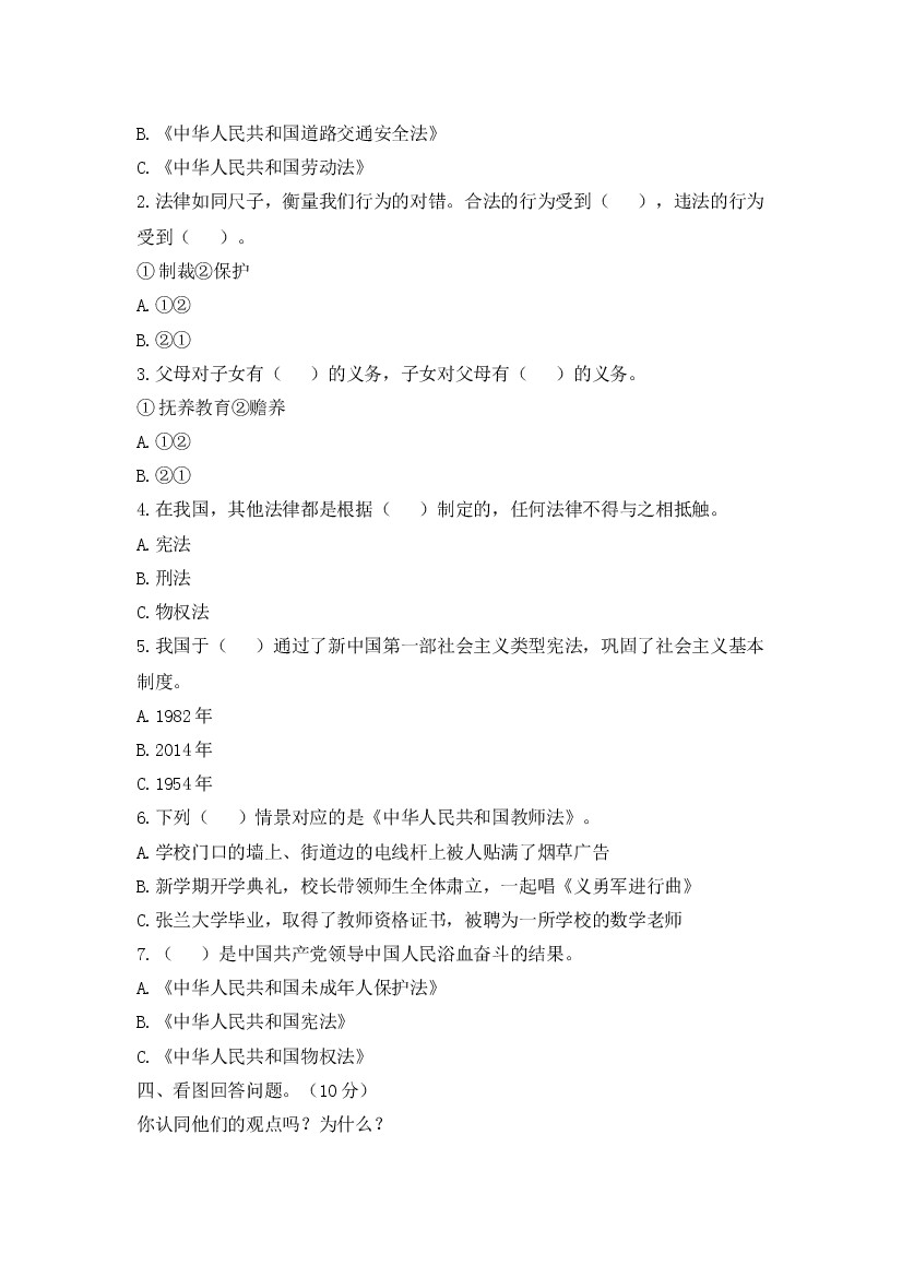 首页 > 全部 > 单元测试 > 六上丨道法 第1单元测试(2)(部编版)