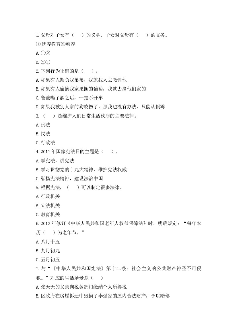首页 > 全部 > 单元测试 > 六上丨道法 第1单元测试(3)(部编版)