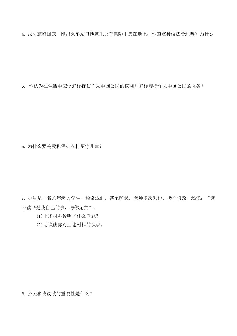首页 > 全部 > 专项练习 > 六上道德与法治简答专题复习卷(含答案)