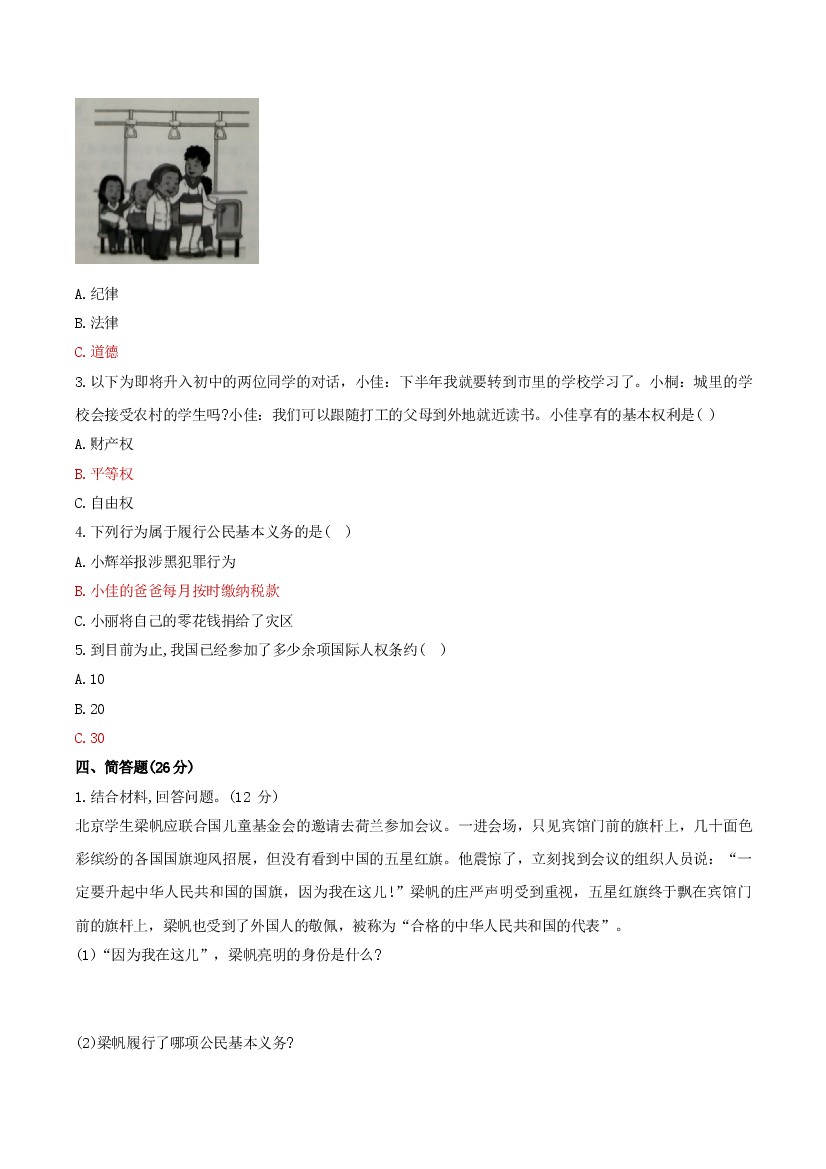 首页 > 全部 > 期中试卷 > 六上道法-期中测试卷(答案版)