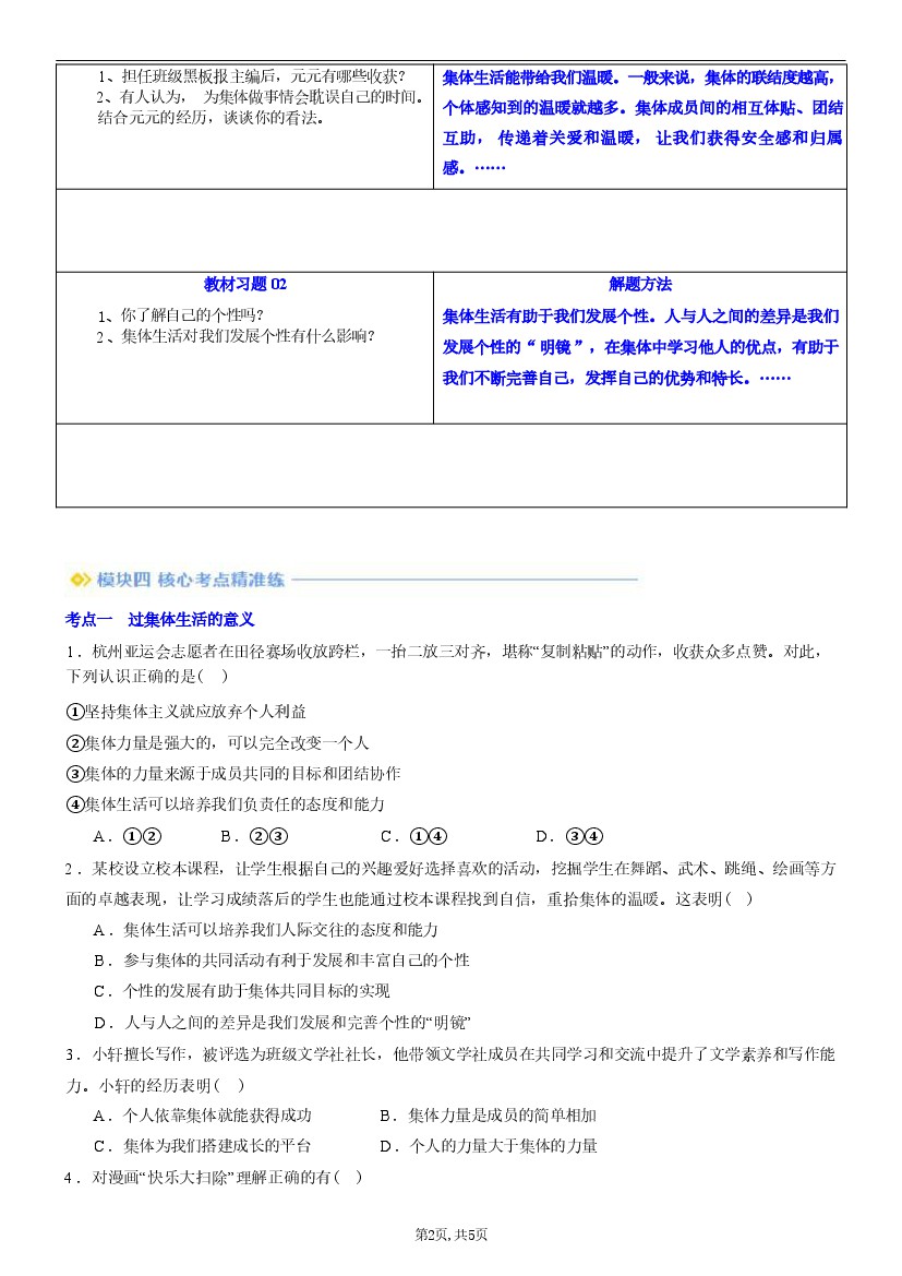 首页 > 全部 > 课时练习 > 【七上道法】第13讲 集体生活成就我-(原卷版+解析版)