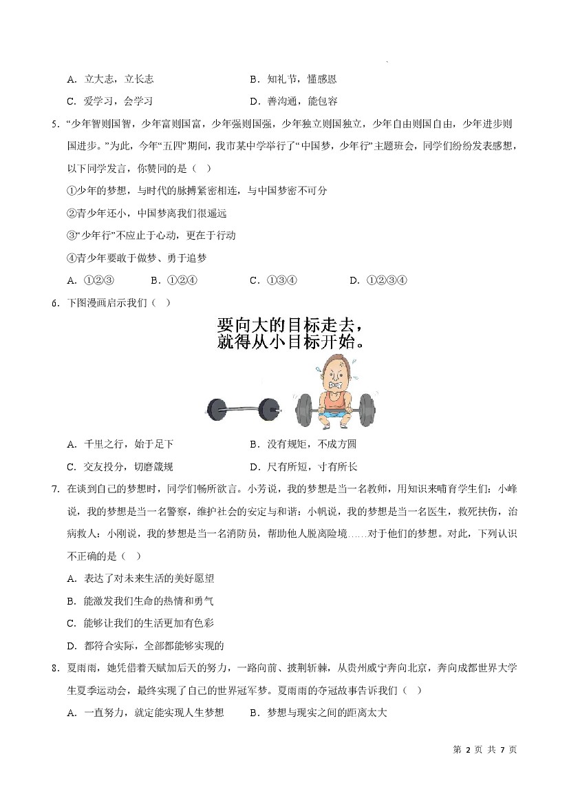 首页 > 全部 > 月考试卷 > 【25七上】道德与法治第一次月考卷