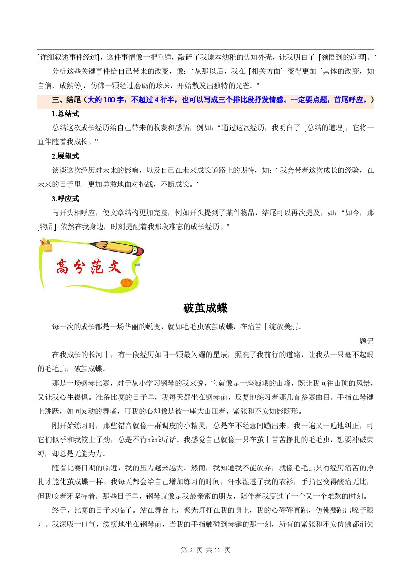 【作文】七年级上册语文专题18 成长经历类作文写作模板+高频素材积累-【同步作文课】