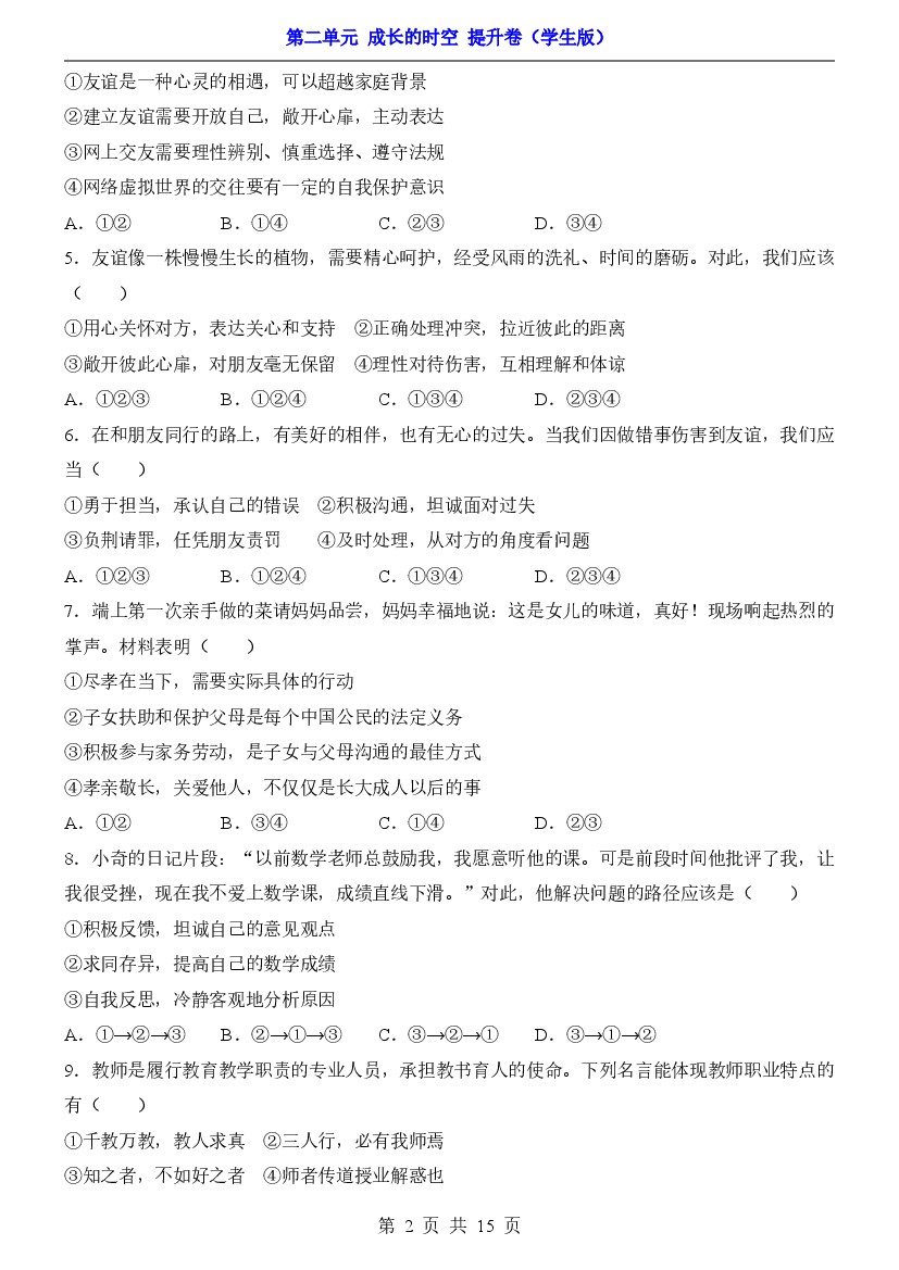 首页 > 全部 > 单元测试 > 七上道法第2单元 成长的时空(提升卷)
