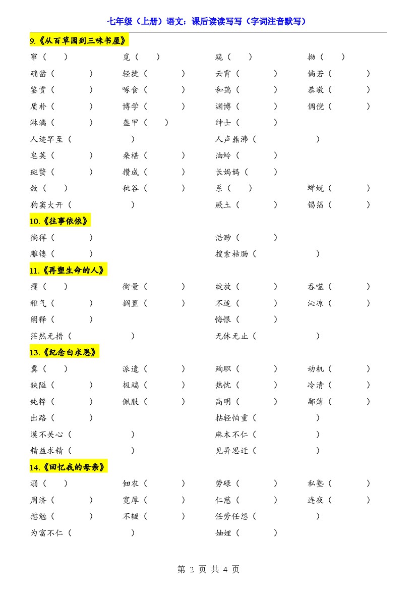 首页 > 全部 > 知识要点 > 七上语文课后读读写写(注音默写)