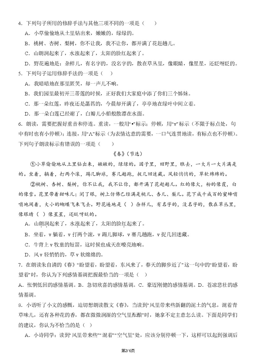 首页 > 全部 > 专项练习 > 【七上语文】02修辞朗读病句排序标点--2025国庆7天练(原卷版)