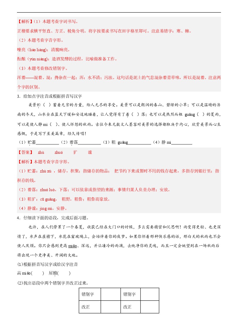 首页 > 全部 > 专项练习 > 【七上语文】01字音字形与成语运用--2025国庆7天练(解析版)