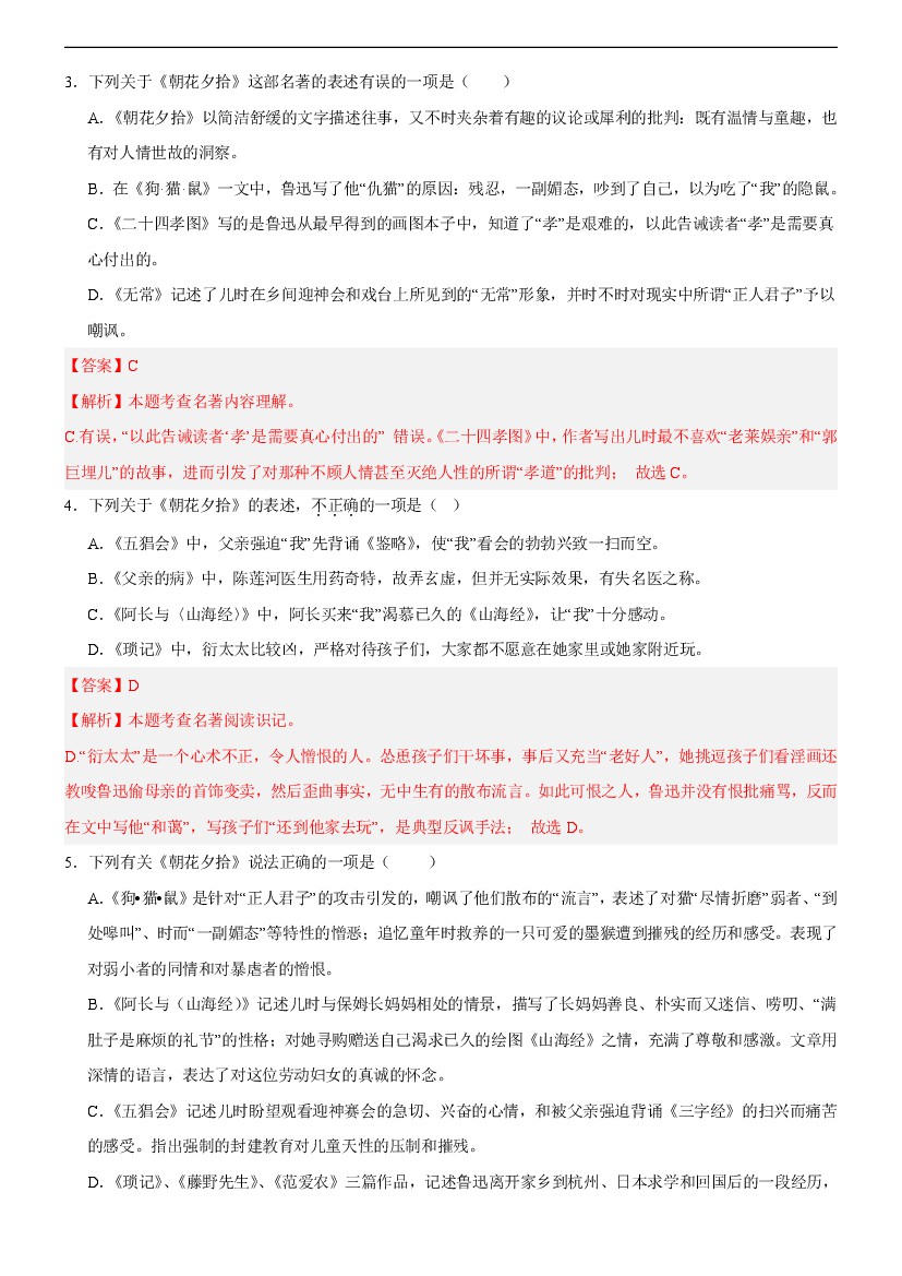 首页 > 全部 > 专项练习 > 【七上语文】06 整本书阅读《朝花夕拾》--2025国庆7天练(解析版)
