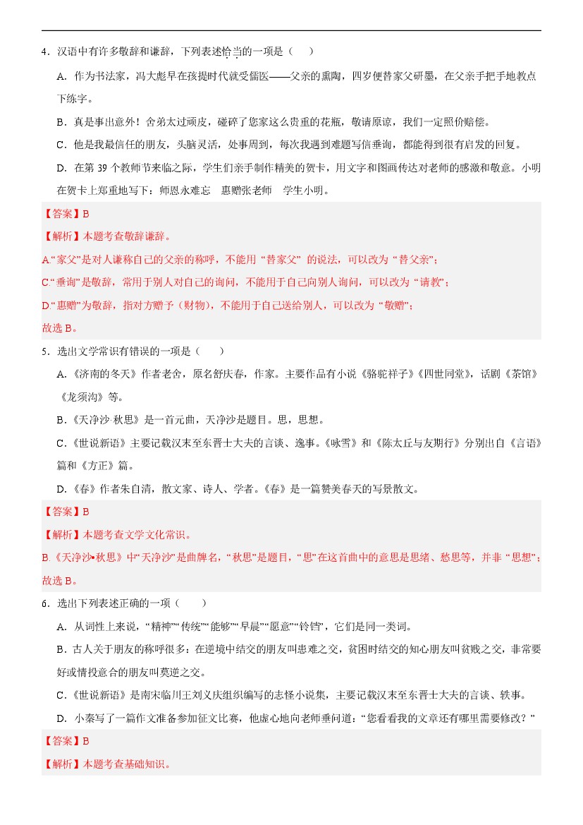 首页 > 全部 > 专项练习 > 【七上语文】03文学常识与专题学习活动--2025国庆7天练(解析版)