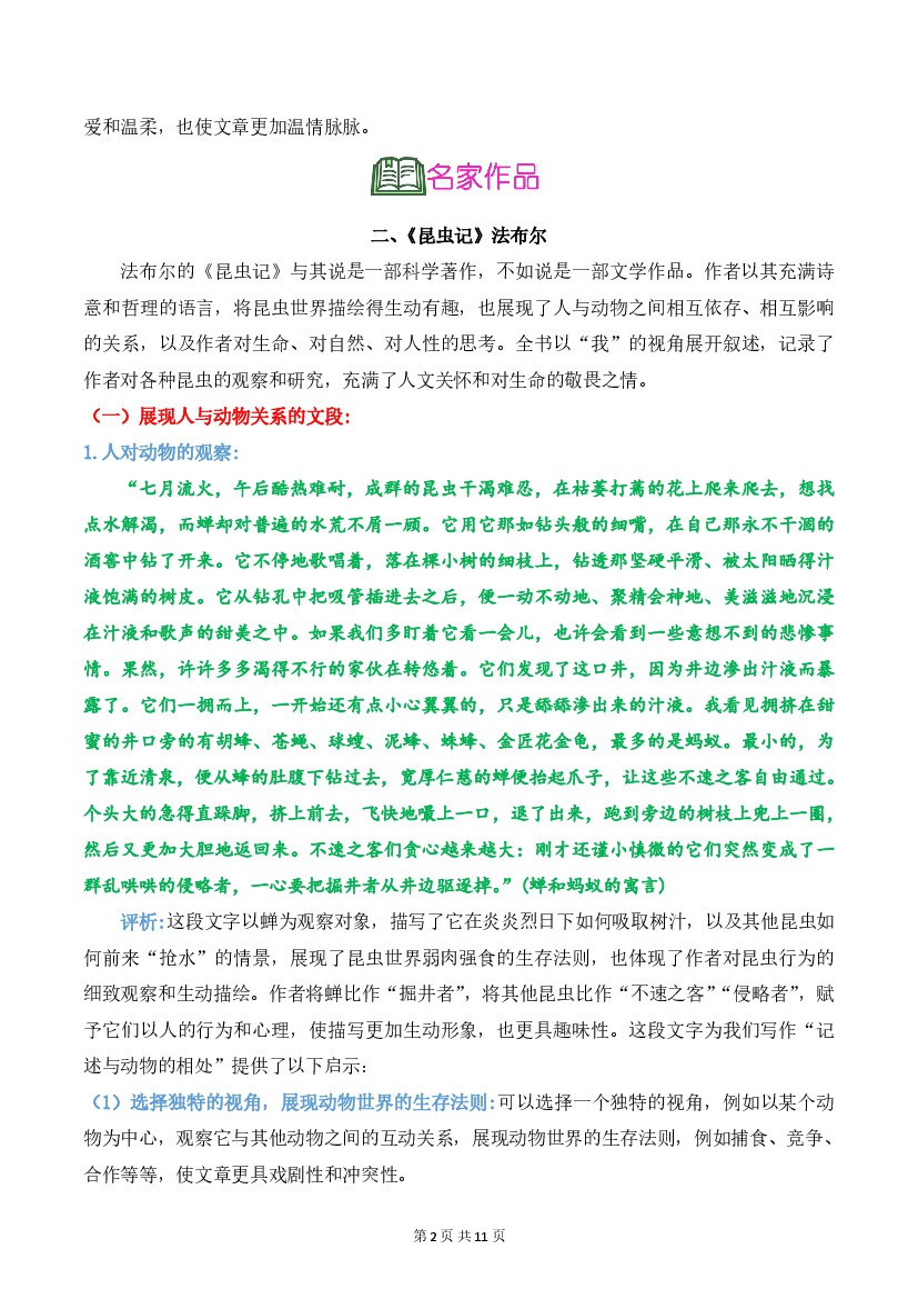 初中 【作文】七年级上册语文专题05:素材摘抄——名家作品中的动物情缘(名家作品素材阅读+单元专题解析)