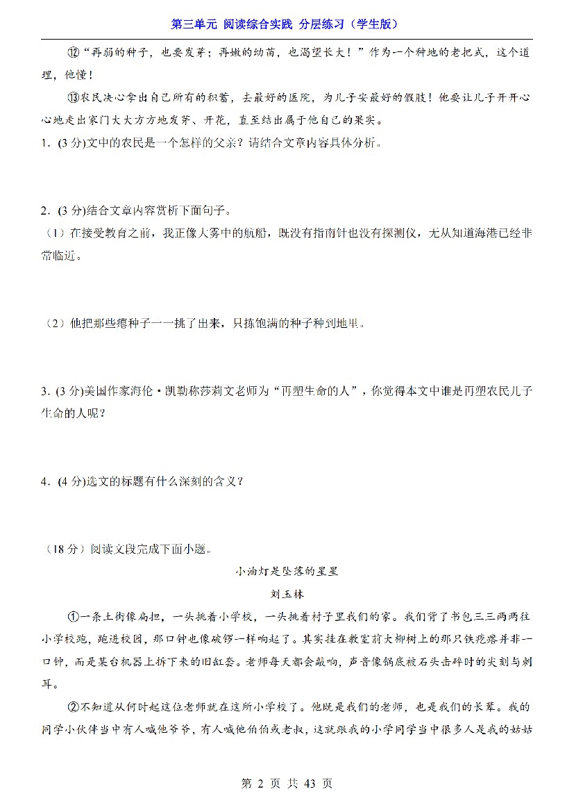 初中 七年级(上)语文第三单元 阅读综合实践 分层练习