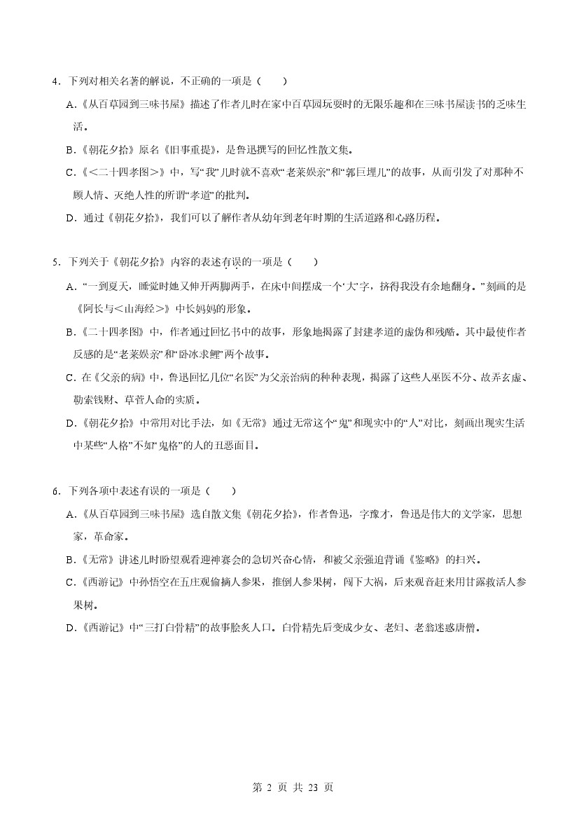 首页 > 全部 > 阅读理解 > 七年级(上)语文名著阅读专题(一)