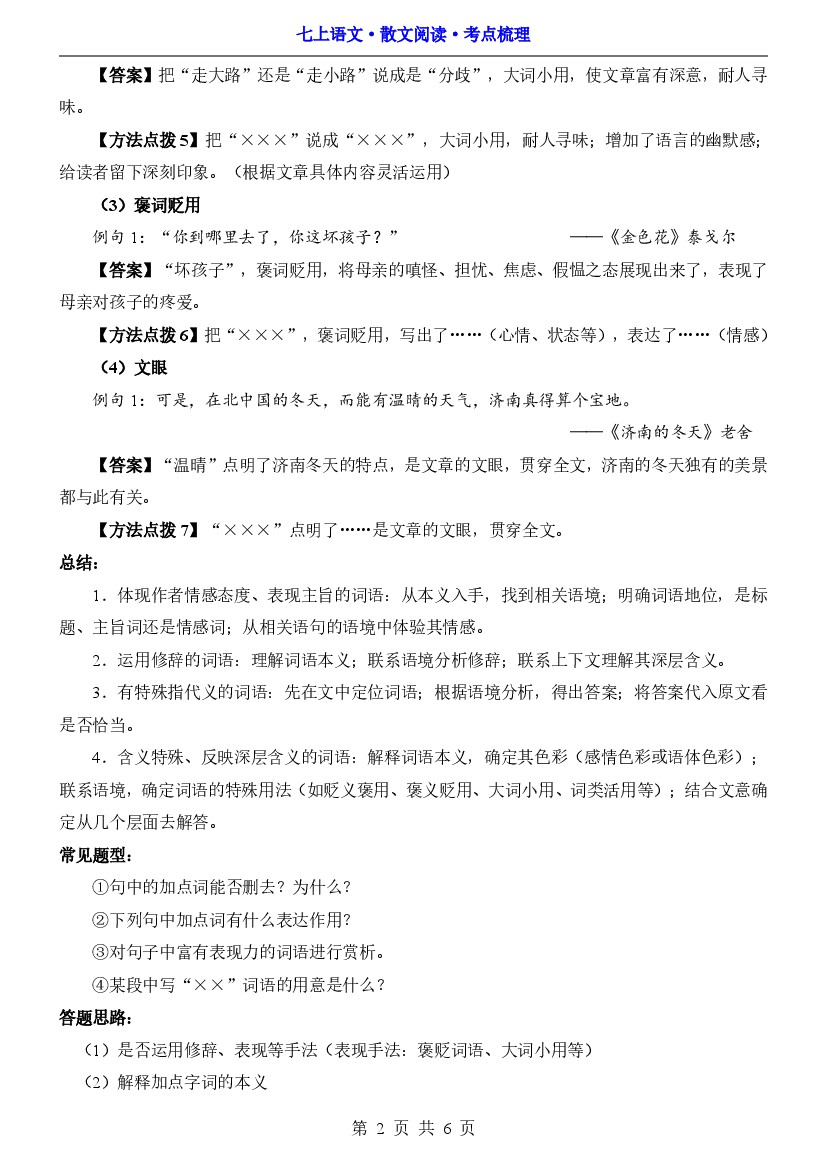 七上语文散文阅读答题技巧