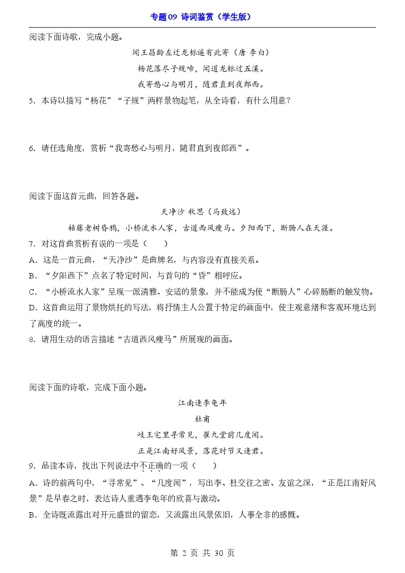 首页 > 全部 > 期中试卷 > 25年秋七上语文期中专项训练专题09 诗词鉴赏