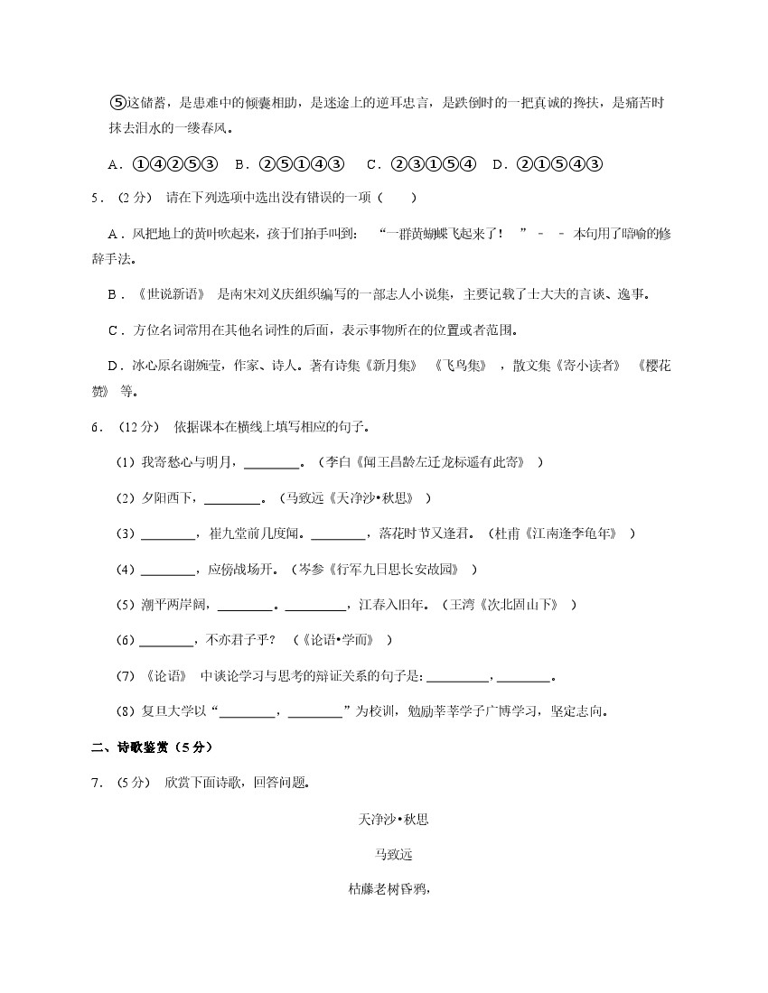 七年级(上)语文期中试卷1-1卷部编版