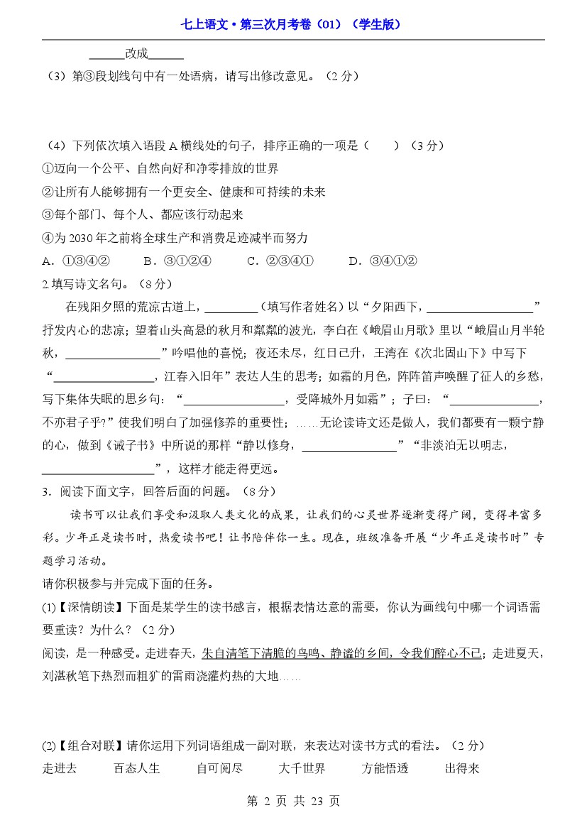 首页 > 全部 > 月考试卷 > 七上语文第三次月考试卷(新)
