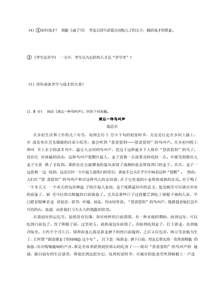 初中 七年级(上)语文期末试卷1-2卷部编版