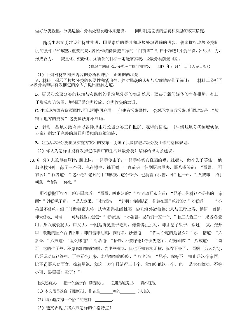 初中 七年级(上)语文期末试卷8-2卷人教部编版